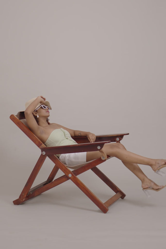 This pastel green tube top is made from a premium linen and cotton blend fabric. The marble finished buttons give a elegant look. This tube top is perfect for vacations and can be styled with a blazer for office wear.
